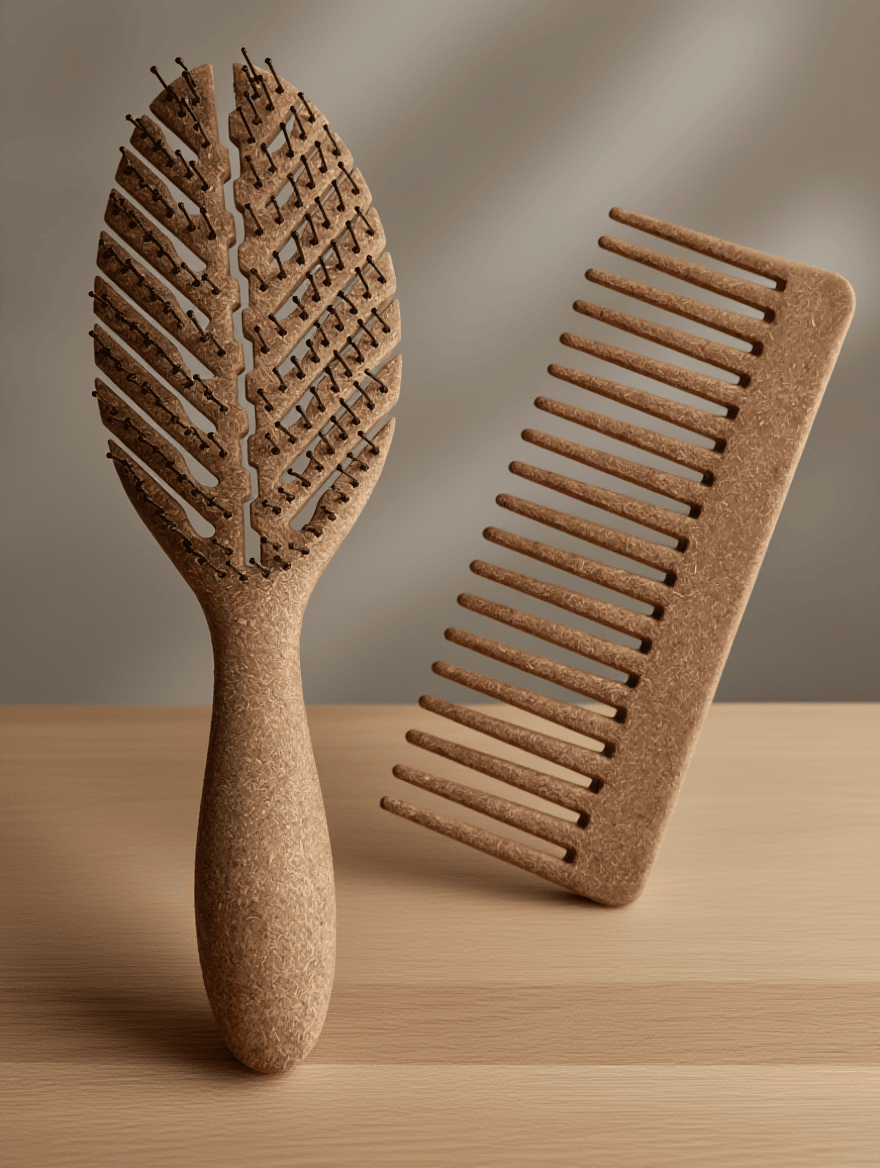 Peine y Cepillo en fibra de Coco: Al ser fibras naturales ayudan a reducir la electricidad estática en el cabello comparado con cepillos completamente sintéticos. Sirven como antifrizz.
